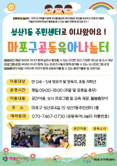 성산1실뿌리복지센터 내 맘카페/마포구공동육아나눔터 개관