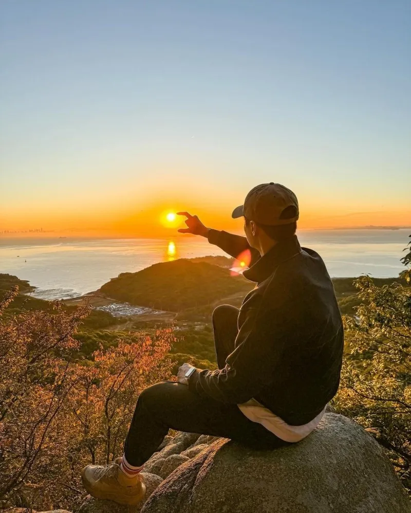호룡곡산 정상에서 주황색 노을을 포착해보세요.