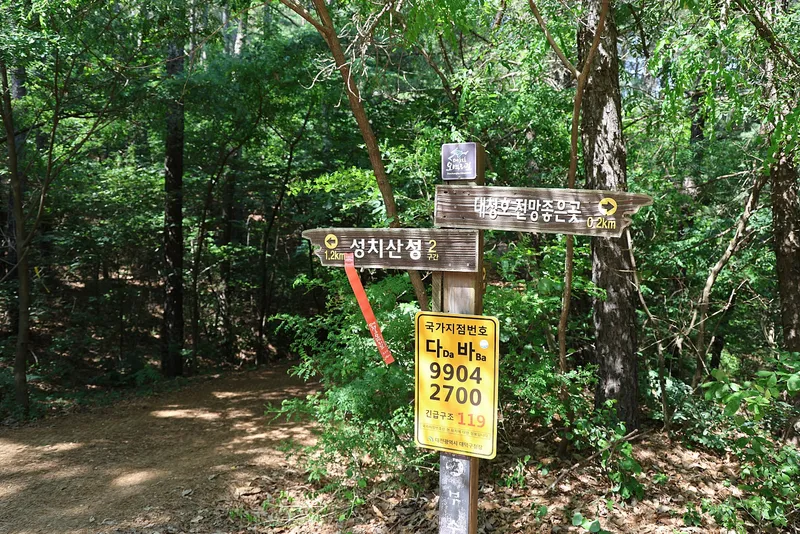 조용히 힐링하기 좋은 대청호 전망 좋은 곳으로 가기 전 넓은 공터에는 벤치가 설치되어있고 반대쪽 길로 가면 대청호 오백리길 2구간 성치산성으로 이어집니다.