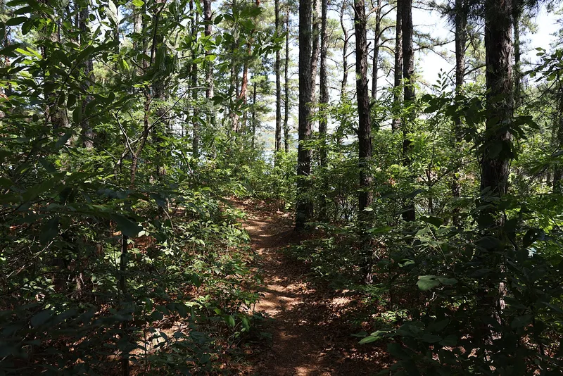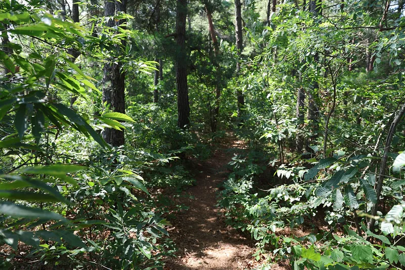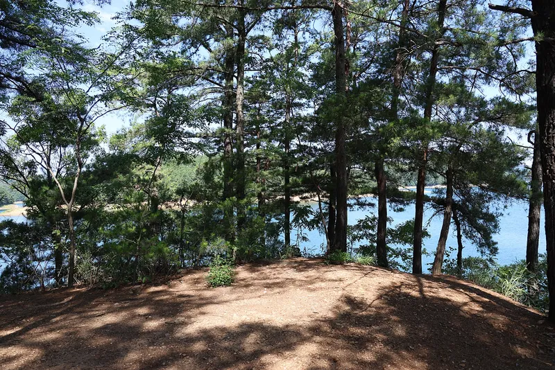 좁은 오솔길이라서 무더운 여름에도 긴 바지나 토시를 착용하고 방문하시는 것을 추천해 드립니다. 나무와 숲으로 우거진 오솔길을 따라 5분 정도 걷다 보면 넓은 공터가 나오고 앞으로 대청호를 볼 수 있습니다.
