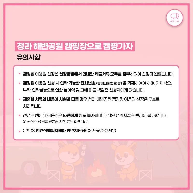 『청라 해변공원 캠핑장 이용권 신청』 안내를 드립니다.
