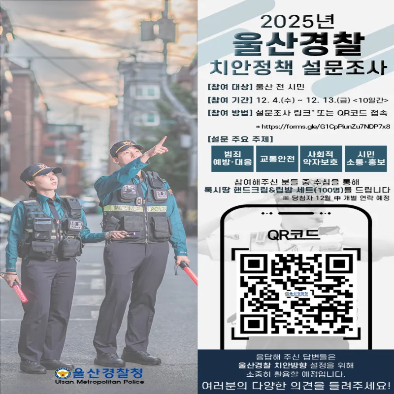 🌟 참여 방법: 울산경찰청 홈페이지 또는 SNS에 게재된 QR코드 및 링크를 통해 참여