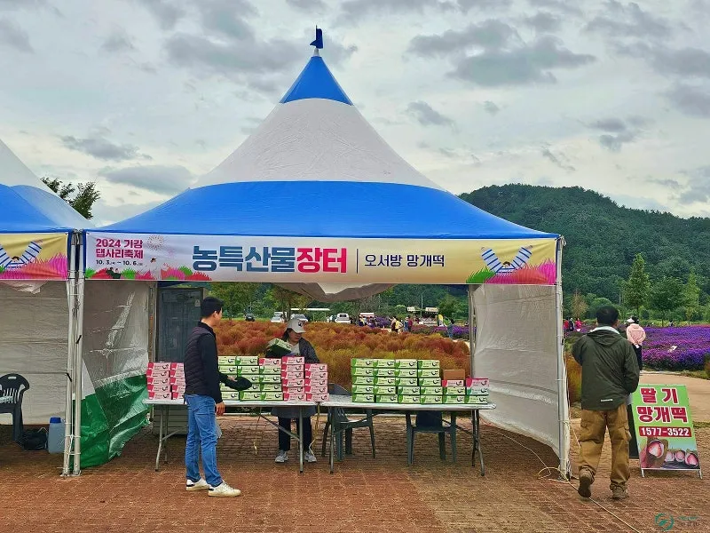 축제장인 만큼 먹거리와 농산물 판매장이 함께 운영되고, 테이블이 여러 곳에 마련되어 있어 편하게 차 한잔, 간식으로 쉼도 즐길 수 있습니다.