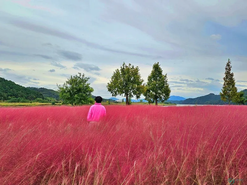 축제장에는 댑싸리뿐만 아니라 핑크뮬리, 아스타국화, 구절초, 코스모스 등 가을꽃들이 모두 모여 잔치하듯 고운 자태를 뽐내고 있어 관람객들을 만족시켜 줍니다.