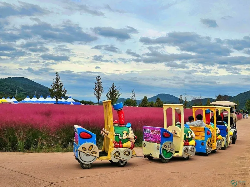 댑싸리 축제 기간동안 운행되는 댑싸리관람열차가 오가고 있어 축제의 흥을 더해줍니다.
