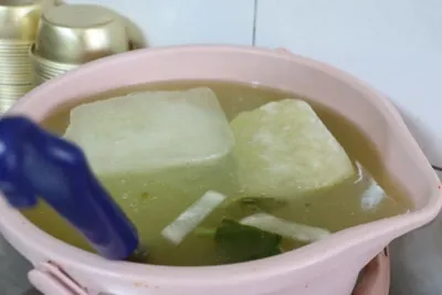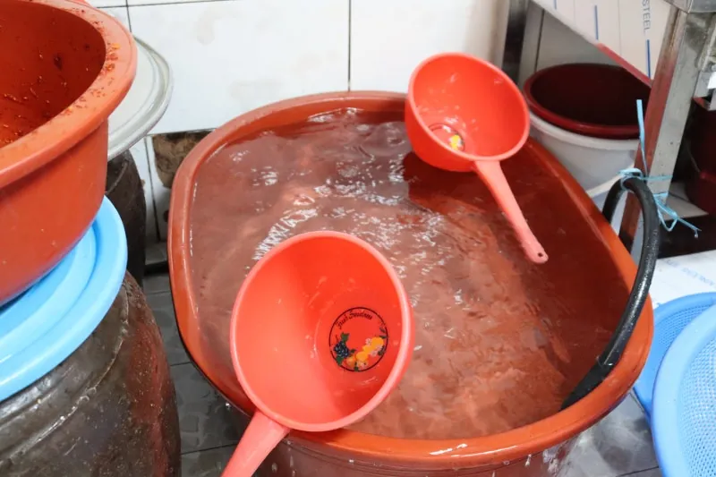무를 잘 썰어 만든 동치미 또한 지하수로 담그는데, 4일 이상 숙성시켜 손님상에 올라갑니다. 아삭하게 얼린 동치미 국물은 열무 동치미국수에 넣는 국물로 제격입니다. 음식 만들 때 쓰는 지하수는 계속 틀어놔야 하는데, 물을 안 틀어놓으면 지하수에도 하얀 불순물이 생긴다고 합니다.