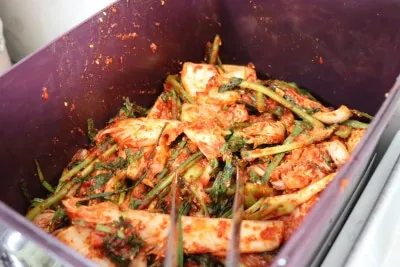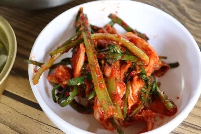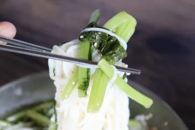 지하수로 담근 열무 물김치는 일반 물에 담근 열무와는 비교할 수 없을 만큼 새파랗고 아삭아삭한 식감을 자랑하며, 독특한 풍미가 있습니다. 맑은 물이 계속 흐르는 곳에서 물을 받아 국수를 삶고 씻는다며 맛있는 국수 비법이 물에 있음을 강조하셨는데요, 직접 담근 김치와 고명으로 올라갈 김치도 보여주셨습니다. 확실히 색감이 다릅니다.