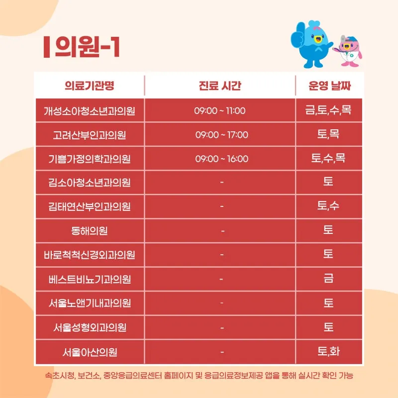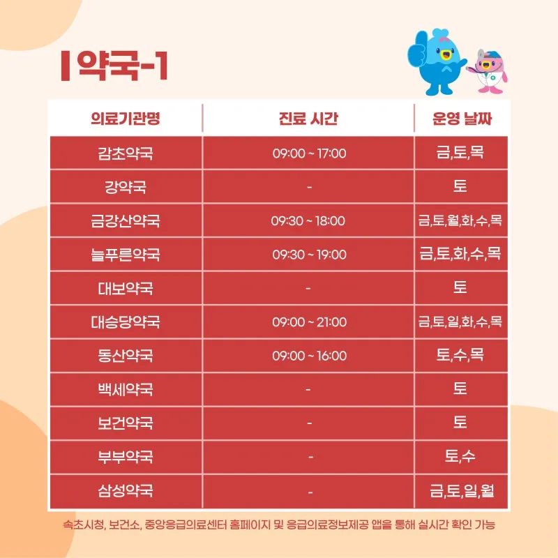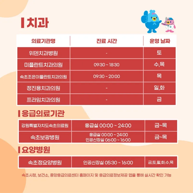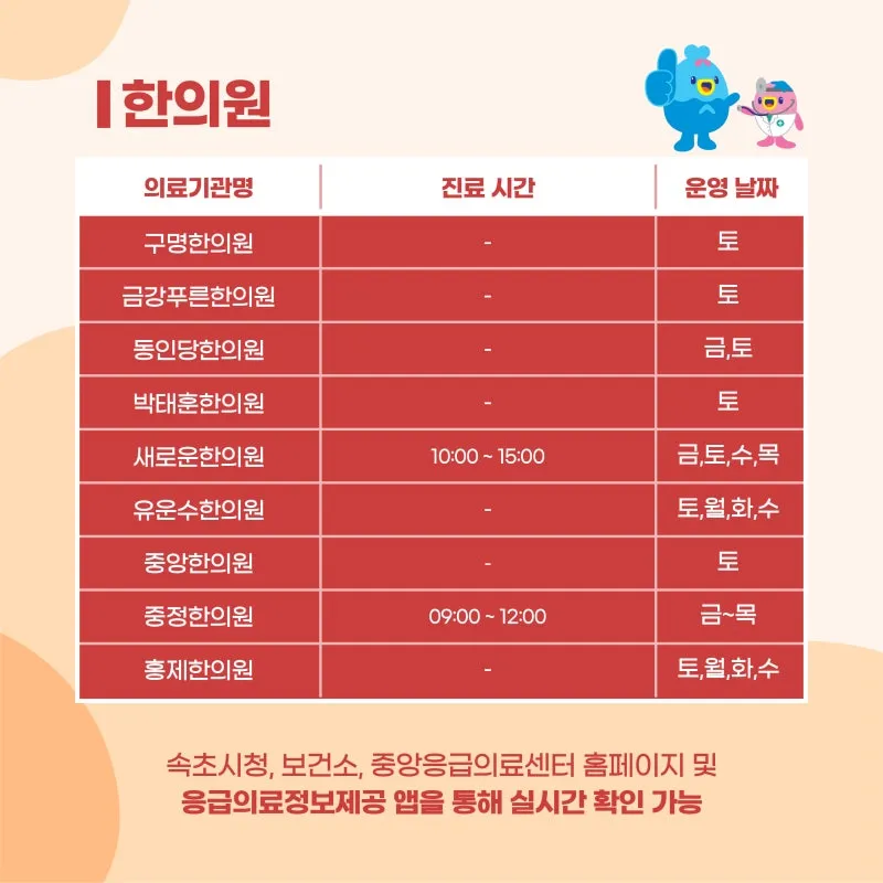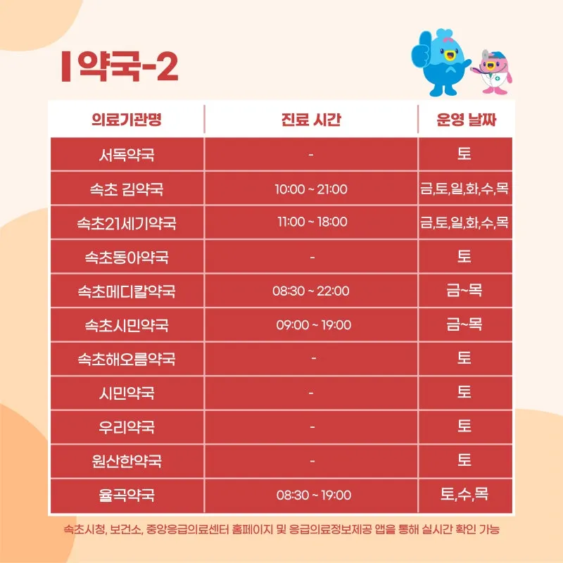 🌕10.9.(목) 속초시 내 병‧의원 및 약국 운영 현황 안내🍂