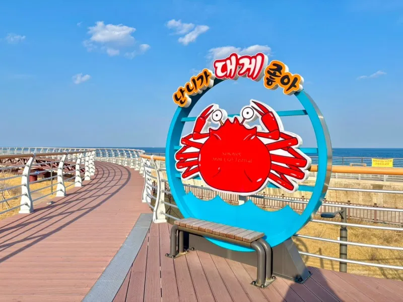 곳곳에 귀여운 포토존과 바닷길을 따라 놓인 벤치들은 잠시 머물며 바다를 감상하기에 딱 좋아요. 해 질 무렵이면 하늘이 노을빛으로 물들고, 바다는 황금빛으로 반짝이며 또 다른 매력을 선물해 줄 것 같아요!