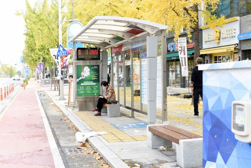 승차장에 버스를 기다리기 위해 앉아 있으면