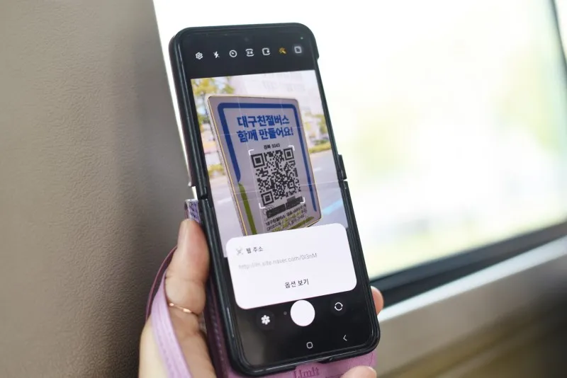 버스에 부착된 QR코드를 찍어 스캔 후