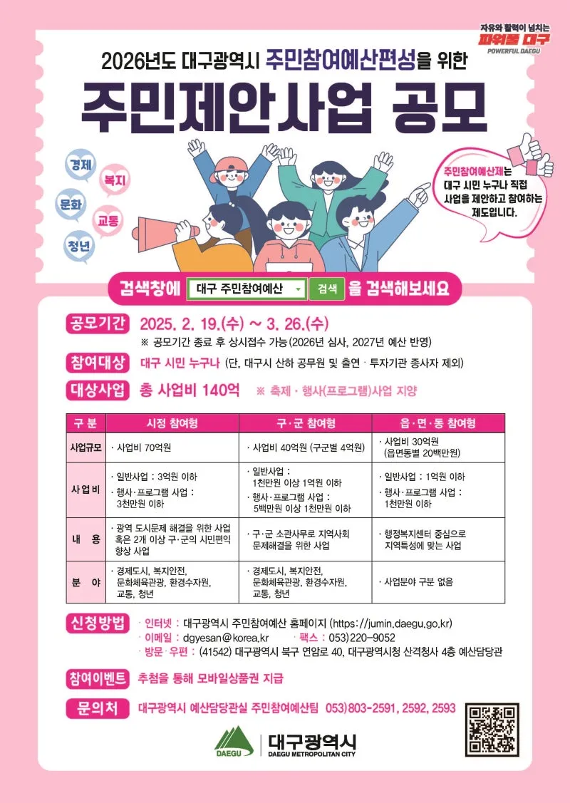 2026년도 대구시 주민참여예산편성을 위한 주민제안사업 공모!