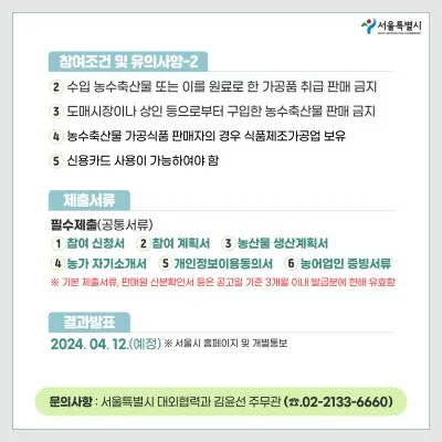 2024년 서울특별시 농부의 시장 참여농가 모집 공고