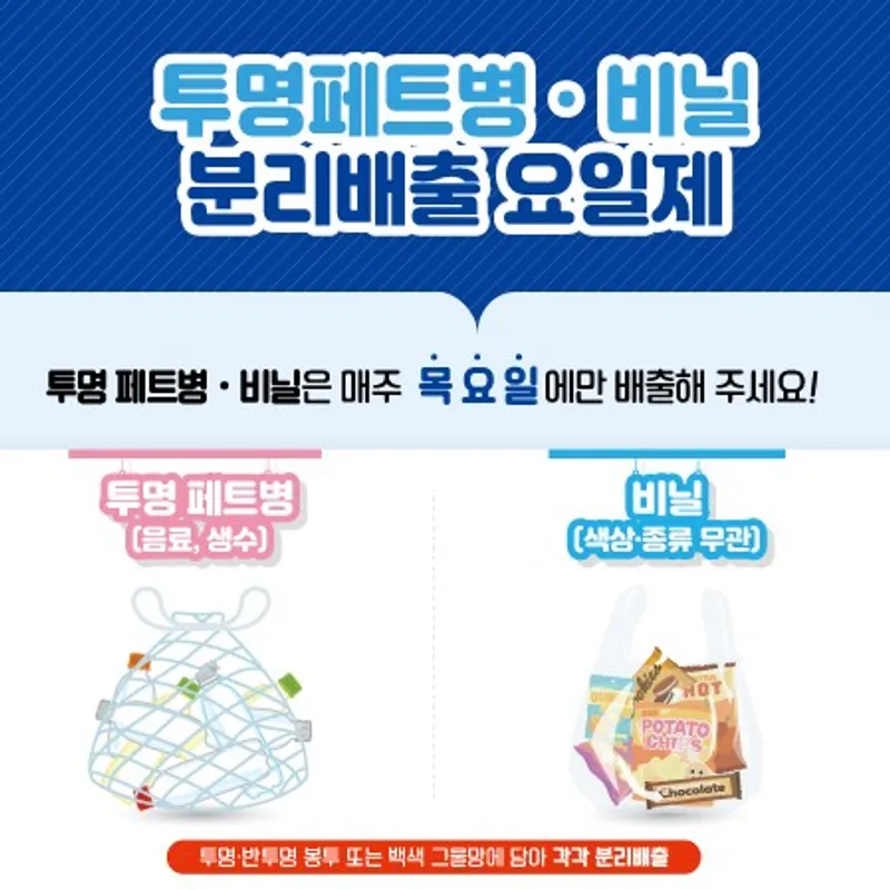 [매주 목요일] 비닐·투명페트병 분리배출해 주세요!