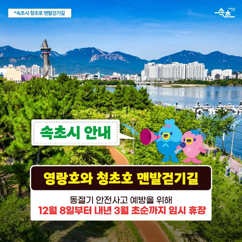 #속초시 #속초시청 #영랑호 #청초호 #맨발걷기길 #겨울휴장안내 #안전한속초 #휴식하는길 #봄에만나요