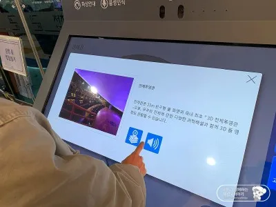 천체관에는 넓은 국립중앙과학관의 모습을 지도로 한눈에 볼 수 있도록 스크린이 있습니다. 글자로 된 설명뿐 아니라 음성 설명으로도 들어볼 수 있으니 원하는 관람관을 찾기 수월하겠네요.