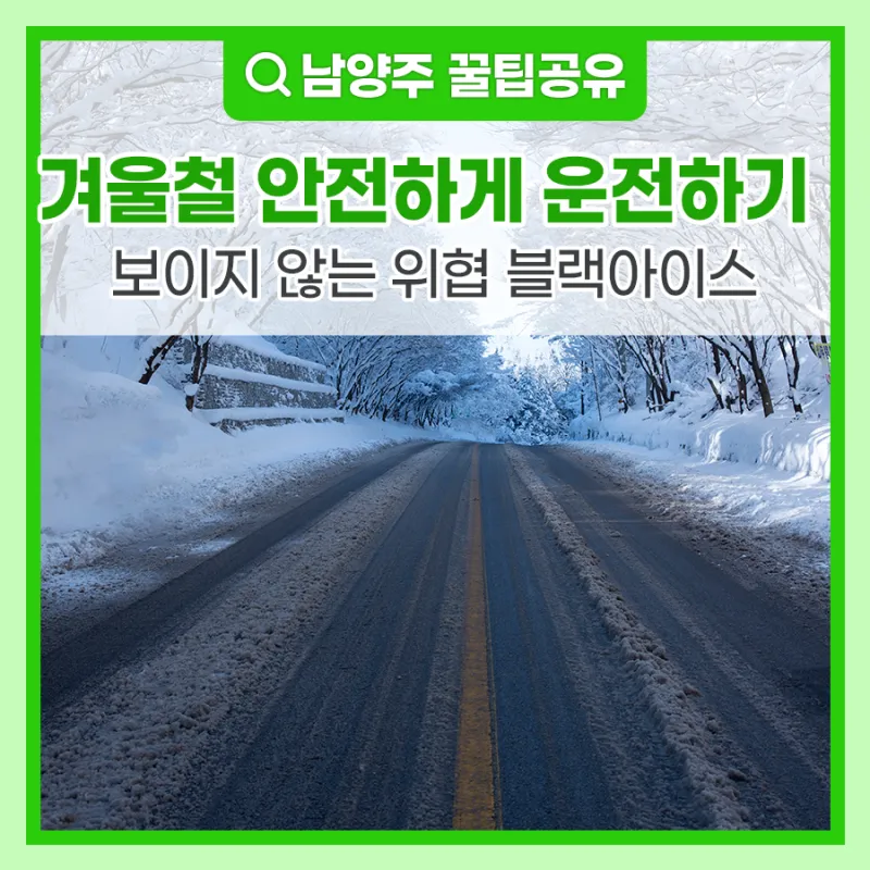 겨울철에 블랙아이스가 생기기 쉬운 도로에서는 평소보다 절반가량 속도를 줄여 주행해주세요. 운전 중에 블랙아이스를 발견하게 된다면 먼저 차량의 속도를 낮추고 앞차와의 거리를 충분히 유지해야 합니다. 그리고 블랙아이스 구간은 가능한 브레이크나 핸들을 조작하지 않고 천천히 지나가는 것이 안전하답니다.