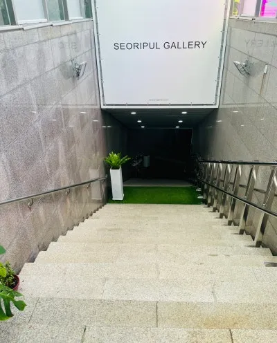 서리풀청년아트갤러리의 입구를 찾는 것은 어렵지 않아요. 계단을 따라 내려갔더니 artBnB 전시장이 바로 이어졌어요.