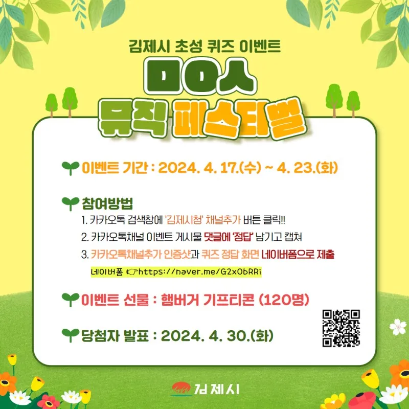 2024김제시 ⭕⭕⭕ 뮤직페스티벌 초성퀴즈 이벤트✨