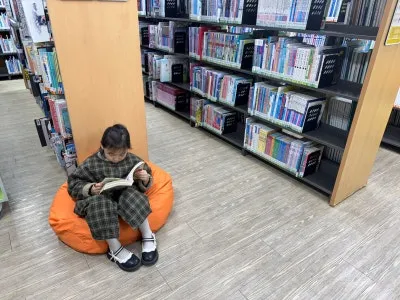 한쪽 구석에선 초등학생들이 모여 핸드폰 게임을 하고 있어요. 엄숙한 느낌의 공간이 아니라 아이들이 더 편안해 하는 것 같아요.