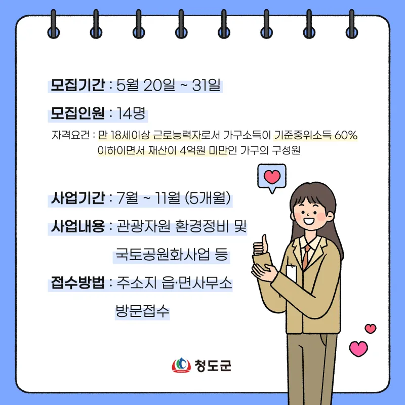 청도군, 하반기 지역공동체 일자리사업 참여자모집