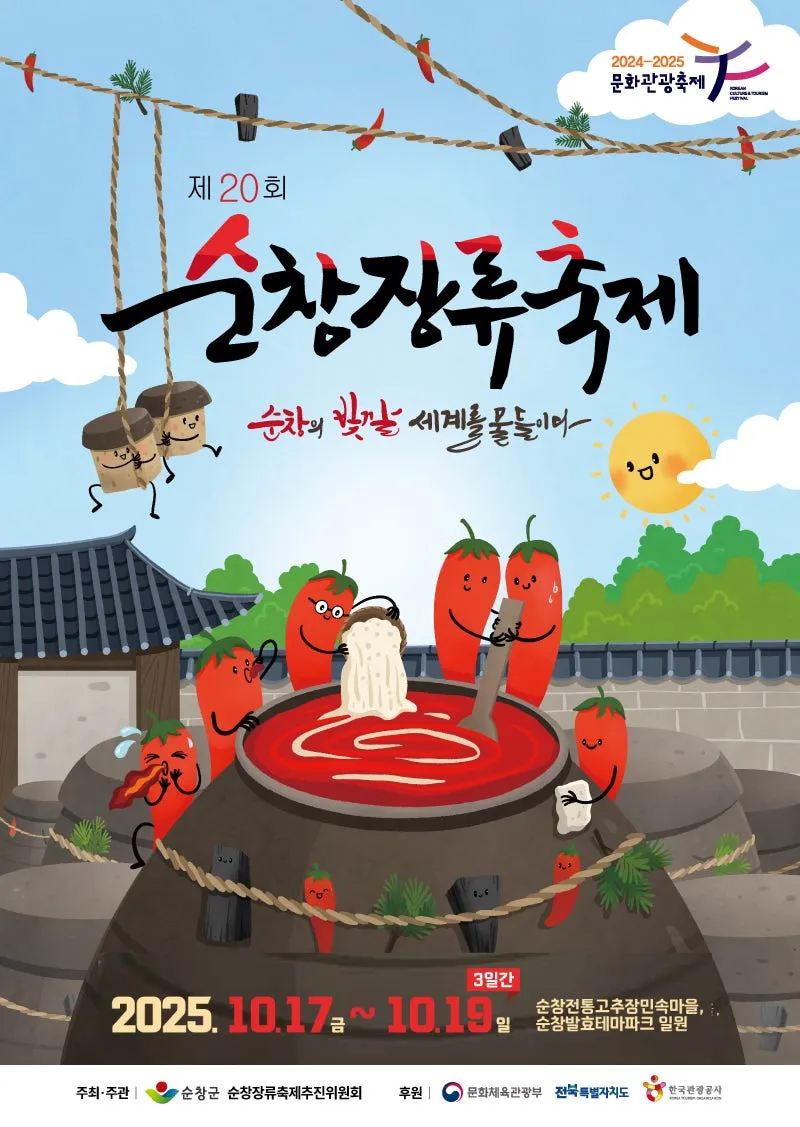 순창의 빛깔 세계를 물들이는 제20회 순창장류축제가 10월에 열립니다.