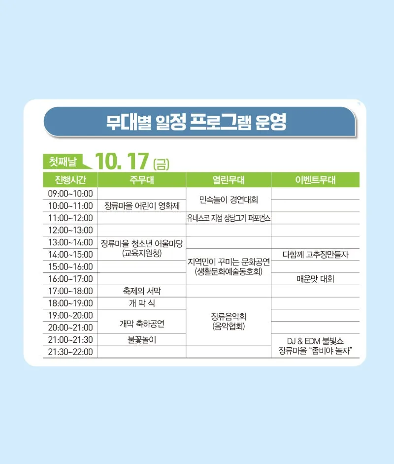 🎤개막식 : 10.17(금) 19:00 주무대 - 김희재, 에녹 외 불꽃놀이