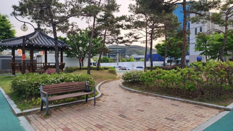 도심 공원 속 정자는 자연과 함께 어우러져 있는 느낌을 줍니다.