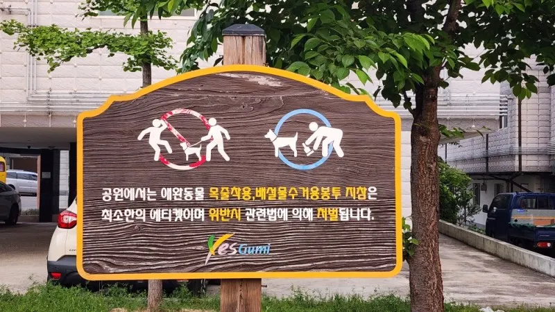 공원 내 애견 동반 시 에티켓 안내가 되어있어요.