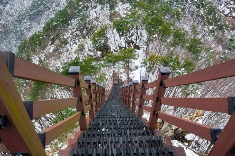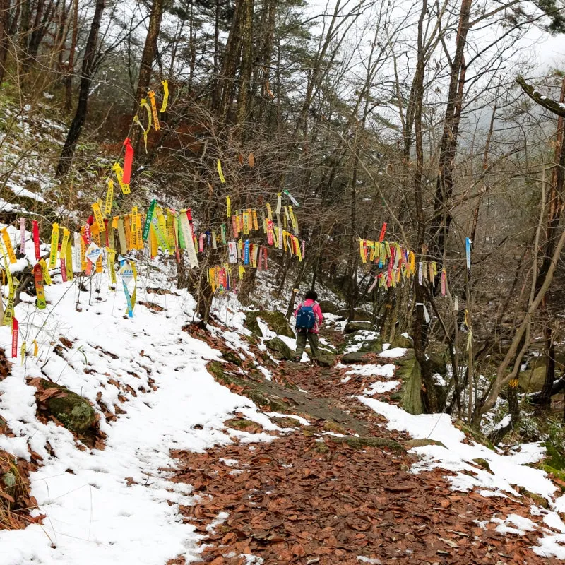 아이젠은 반드시 챙기시고, 스틱도 준비하세요. 비교적 쉬운 삼인봉 일지라도 등산화는 꼭 신으셔야 합니다.