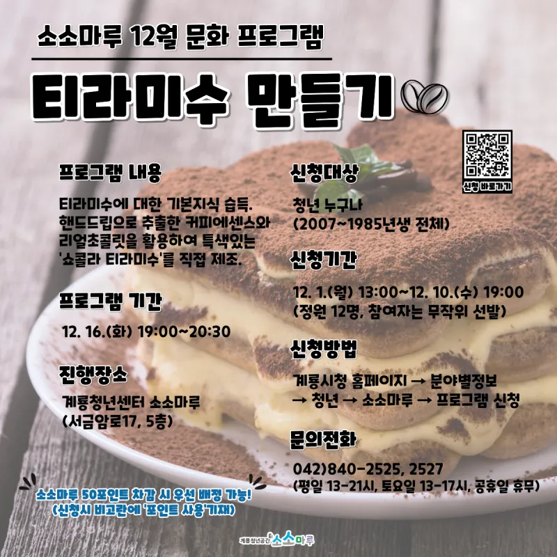 소소마루 12월 문화 프로그램 티라미수 만들기!