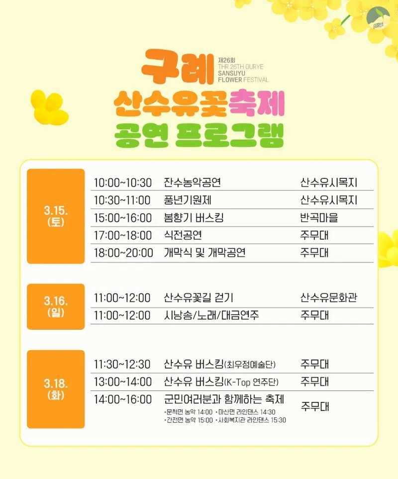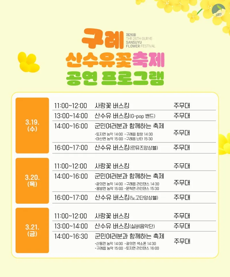 제24회 구례산수유꽃축제 프로그램 안내 및 교통안내