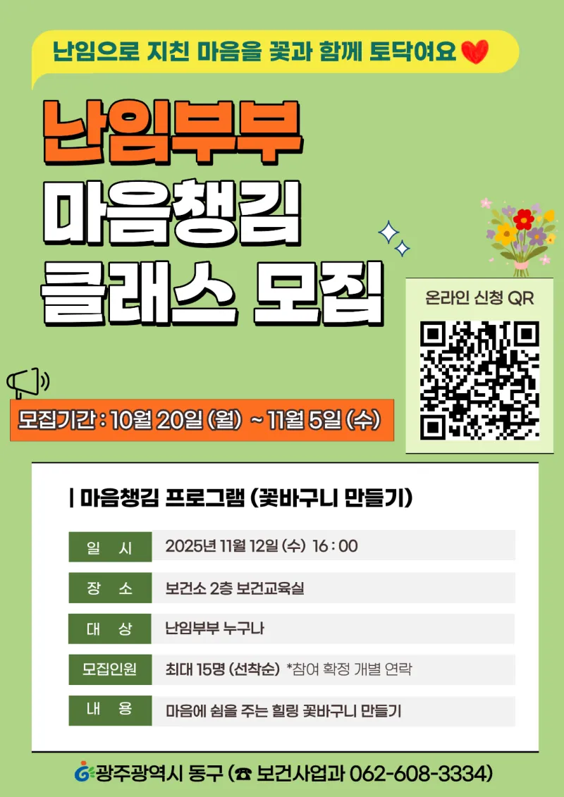 동구보건소에서 「난임부부 마음챙김」 원예클래스 참여자를 모집합니다!