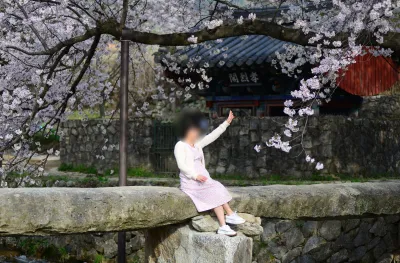 화사한 벚꽃을 배경으로 즐겁게 사진찍는걸 보니 보는 사람들도 즐겁습니다.