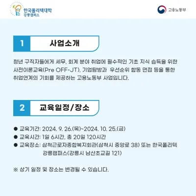 교육장소 : 삼척근로자종합복지회관(삼척시 중앙로 38) 또는 한국폴리텍 강릉캠퍼스(강릉시 남산초교길 121)