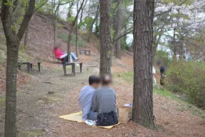 제가 방문했을 때는 벚꽃이 바람에 날리며 떨어지고 있었는데요, 돗자리를 들고 피크닉 나온 시민들이 왕왕 보였습니다.