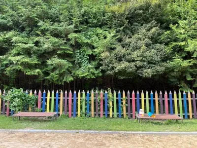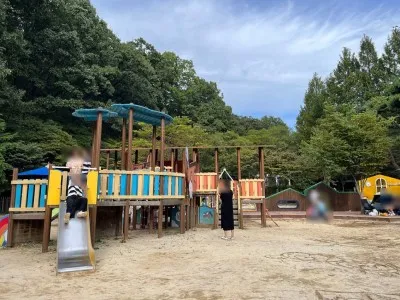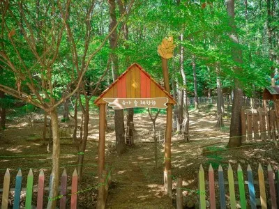 아이들이 실컷 뛰어놀 수 있는 유아숲 놀이터도 보입니다. 아이들과 동행한 가족은 숲속 자연 놀이터 부근으로 자리를 잡고 계셨어요.