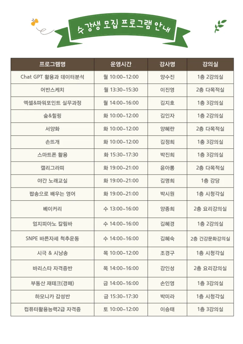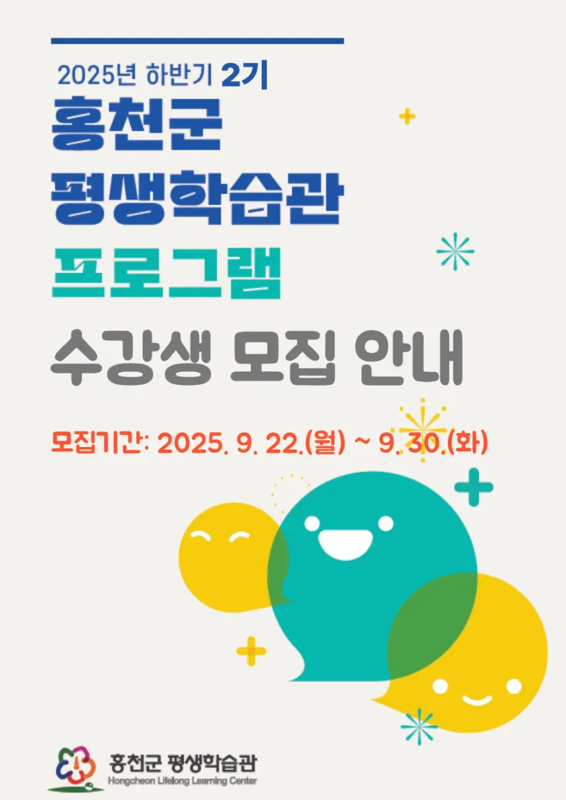 2025년 하반기 2기 홍천군 평생학습관 프로그램 수강생을 모집합니다!