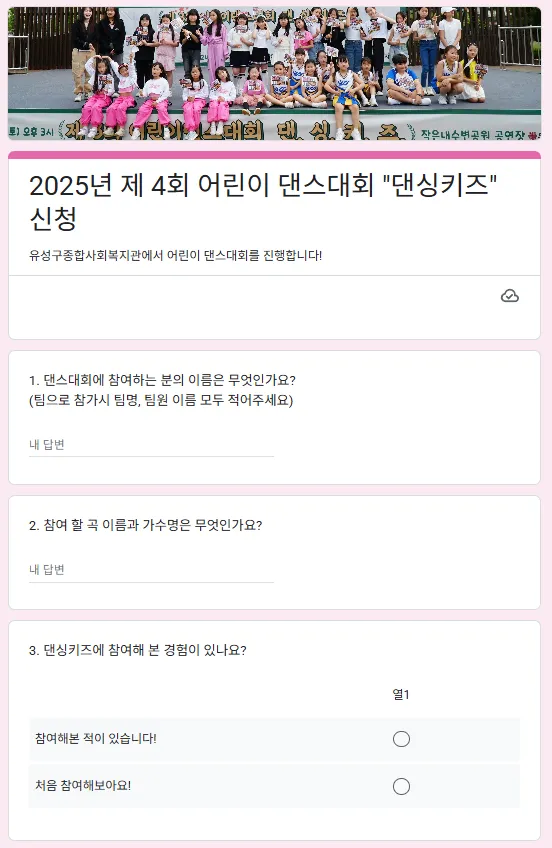 오늘은 대전 유성구종합사회복지관 주최로 이루어지는 <제4회 어린이 댄스대회 댄싱키즈>와 신청 방법에 대해 알아보도록 하겠습니다.
