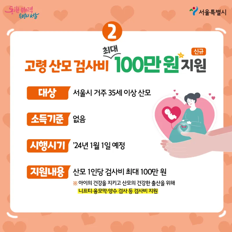 ✔ 대상 : 서울시 거주 35세 이상 산모
