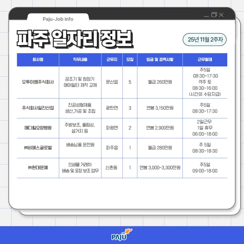 11월 2주차 파주시 취업정보