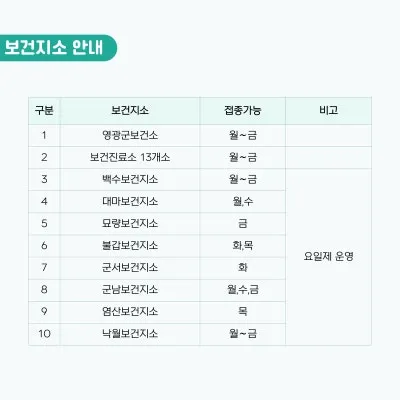 📞 더 자세한 내용은 영광군보건소 예방접종실 로 문의해주세요.