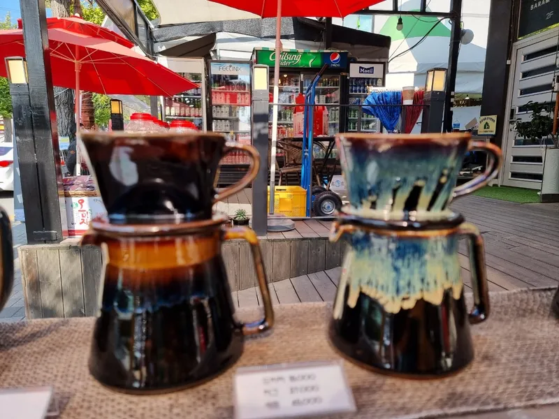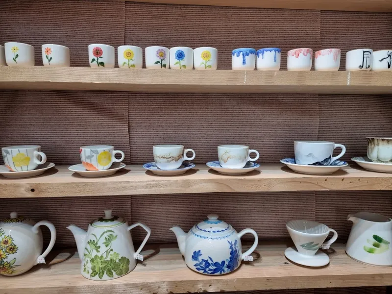 다양한 문양의 찻잔과 커피 내리는 도구도 도자기로 만든 것을 보았습니다