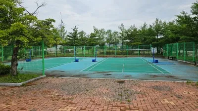 이 산책로와 배드민턴을 즐길 수 있는 배드민턴장,