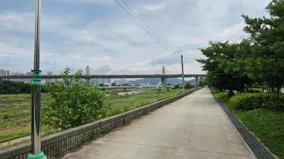 하천변 산책로가 공원 바로 옆에 조성되어 있어서