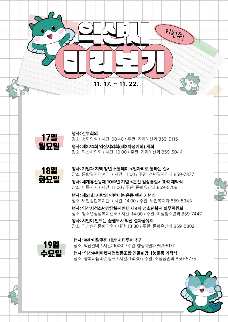 ???? 익산시 주간 주요 일정 (11.17. ~ 11.23.) ????