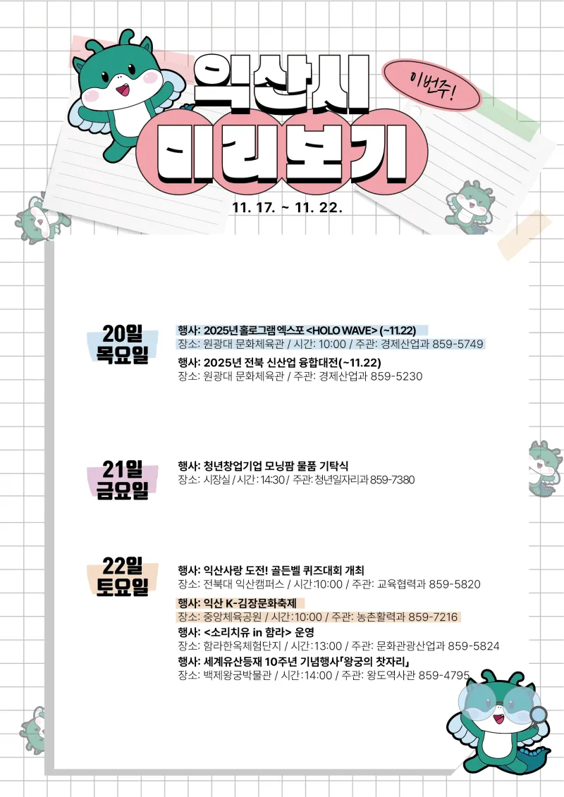 익산시 주간 주요 행사 11월 3주차 (2025. 11. 17. ~ 11. 23.)