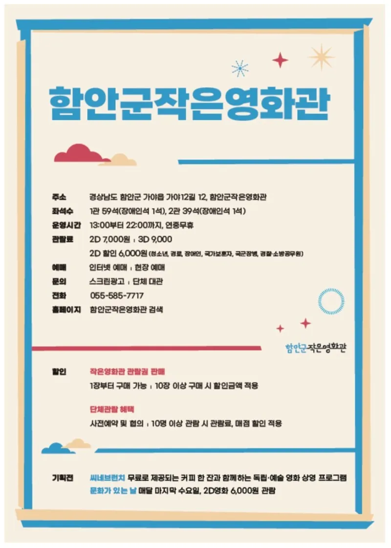 안녕하세요, 오늘은 함안에서 최신 영화를 저렴하게 볼 수 있는 함안군 작은영화관 정보 및 예매 방법을 소개해 드리려고 해요 🩷