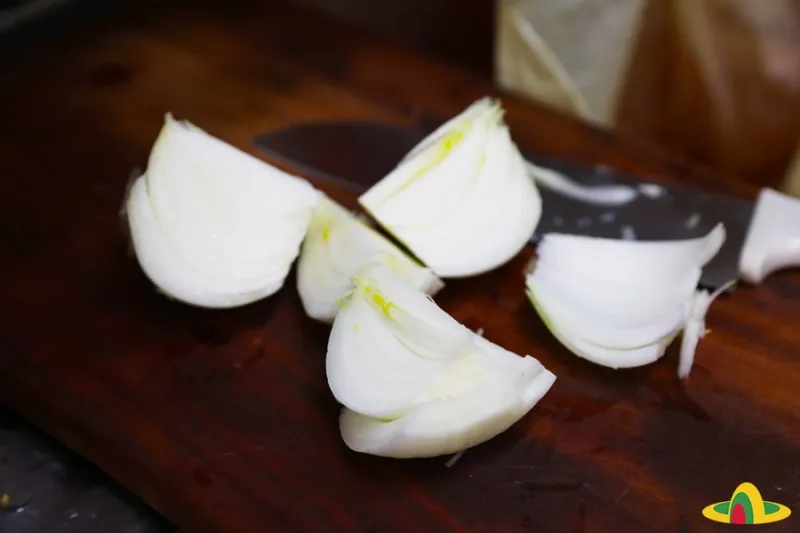 양념장을 만든 다음 양파를 썰어줬어요.
