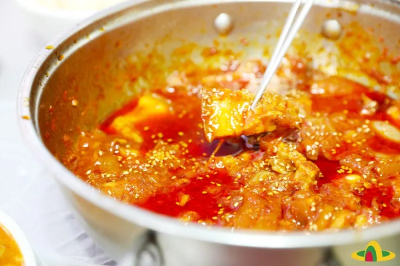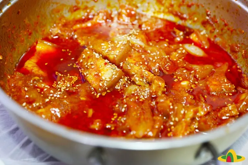 고추장 2스푼, 진간장 2스푼, 고춧가루 2스푼, 미림(맛술) 2스푼, 설탕 1스푼, 후추 0.5스푼.
